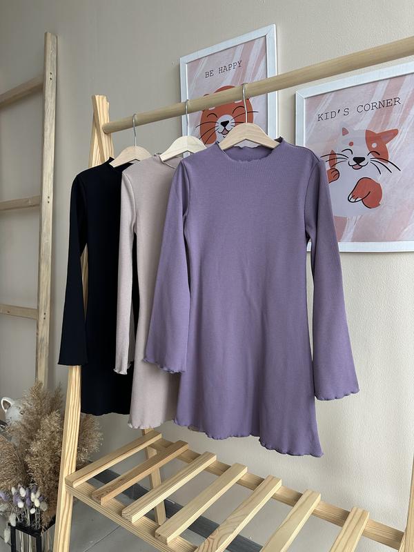 Приталені сукні в рубчик на дівчат Всередині легкий ворс Рукава донизу розширені, оброблені шви Бузкова: 134, 140, 146, 152, 158 Чорна: 146, 152, 158 см Бежева: 134, 158