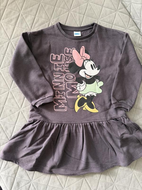Фирменное платье-туника для девочки, с модным принтом Минни, на начесике, фото с замерами есть.