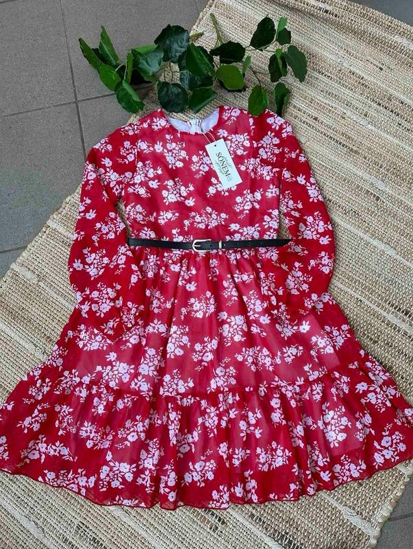 💞👌Легкое и воздушное платье для девочки💄 ткань софт,с середины батистовая подкладка манжет в рукаве под кастор по спинке потайная молния поясок в комплекті РЕКОМЕНДУЮ!💋ла 📍134(1 шт)-длина 70,пог 32,рукав 47 📍146(1 шт)-длина 77,пог 35,рукав 52