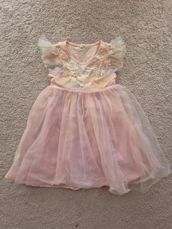 Легкое нарядное платье на возраст 3/4р Расгладить и будет более пышно.Без дефектов Д=57,ш=27(де начинается фатин)