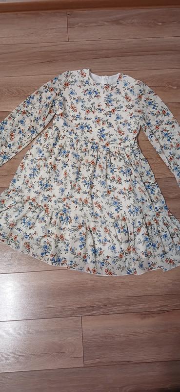 Красивое легкое платье, просвечивающее.Размер 158, совсем см.замеры. Длина-81см.Пив.груди-38см.Талия-36.Рукав-56см.Материал нетянется.