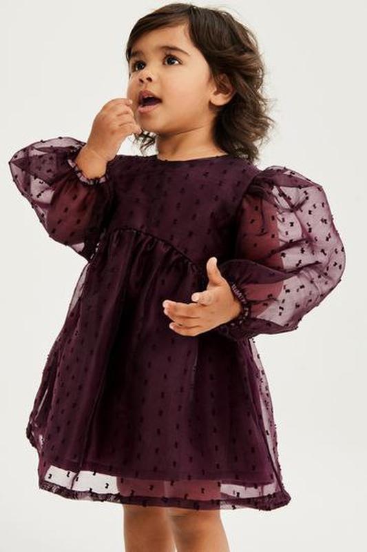 Платье из органзы с объемными рукавами Нарядите свою малышку на все ее праздники в наше очаровательное платье с жаккардовым узором. Сшитое из милой органзы и объемных пышных рукавов, это платье идеально подойдет для всех ее особых случаев. Красивое платье также имеет декоративную талию и свободный крой для максимального комфорта. Дополните образ колготками и милыми балетками. Можно стирать в машинке. Основной материал: 100% полиэстер. Подкладка: 100% хлопок