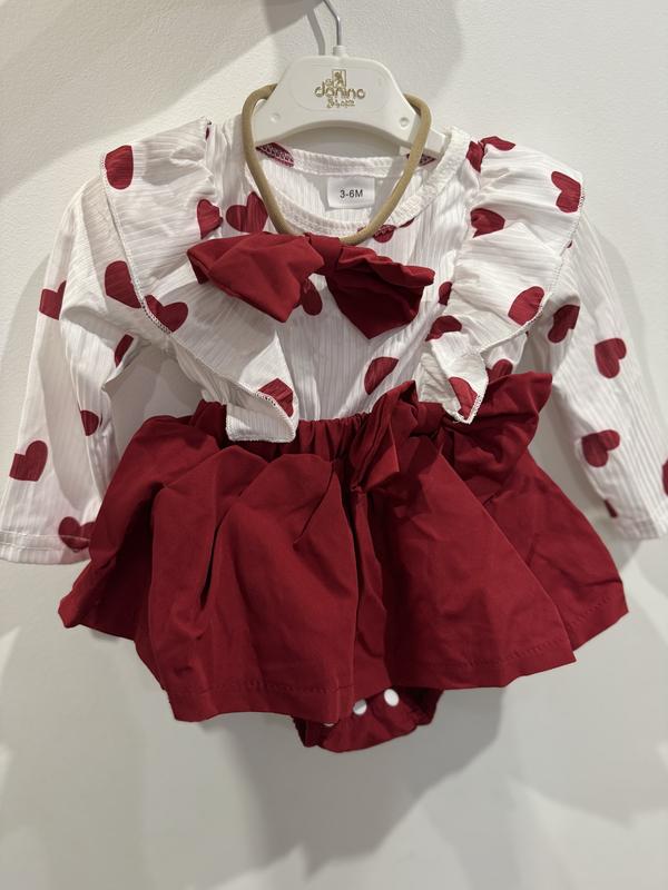 Сукня для дівчинки з принтом у формі серця, в комплекті з юбкою, що прикрашена бантом, боді та пов'язкою на голову, для прогулянок на вулиці