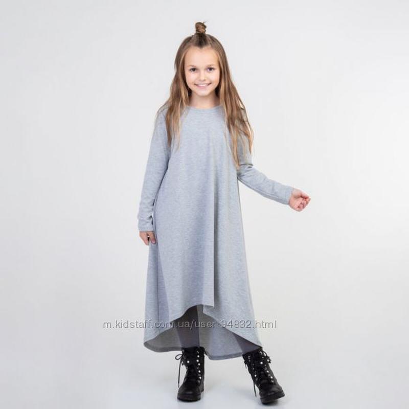 Серое детское платье для девочки в размере 116, 134-140