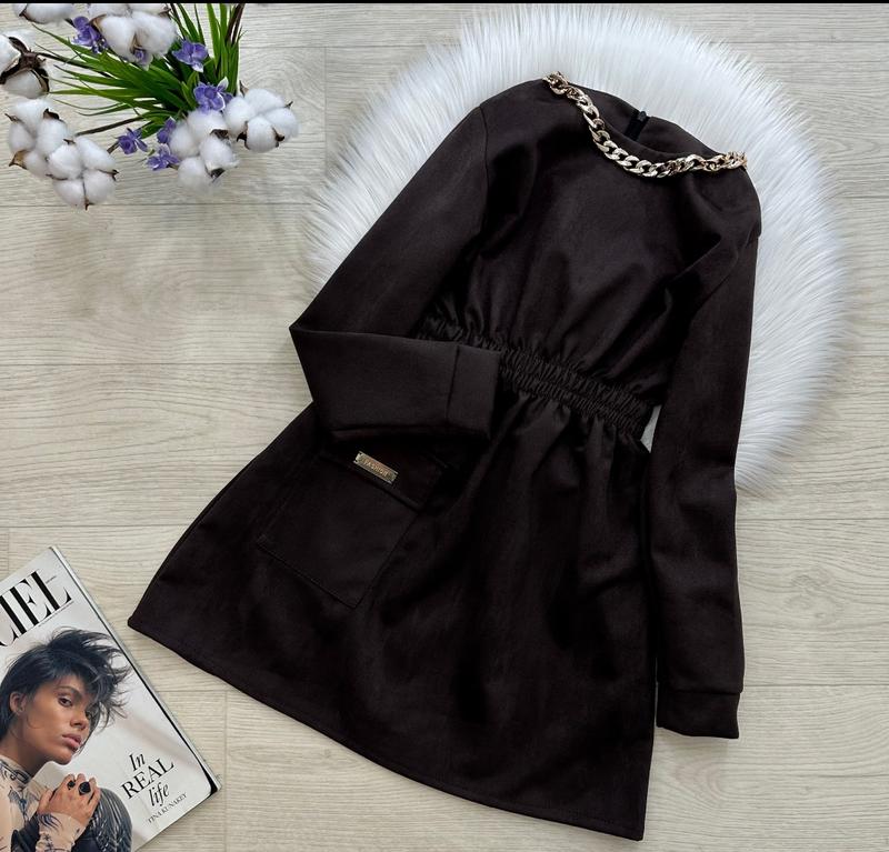 через кнопку купить только полная оплата!!! Стильное платье для красавиц 🤩 В поясе резиночка 😍 Накладной кармашек 😉 Пришивная эмблемка 👌🏻 Застежка- потайная молния ⚡️Трендовая цепочка🔥🔥🔥 Тканина: замш❤️ Производитель: Украина🇺🇦 р.140-1шт ЗАМІРИ +/-1-2см!!! ▪️р.140 длина 71см/рукав от плечевого шва 50см /ПОГ 35см Д-арт: 0894