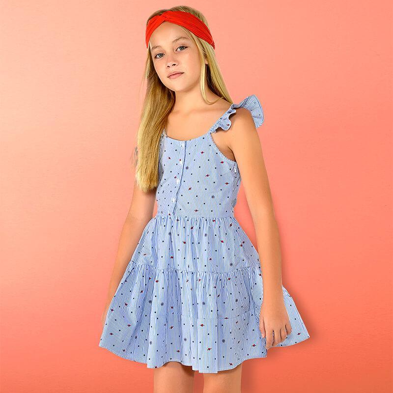 55% вискоза/45% полиэстер легкое платье Mayoral в голубовато/белую полоску