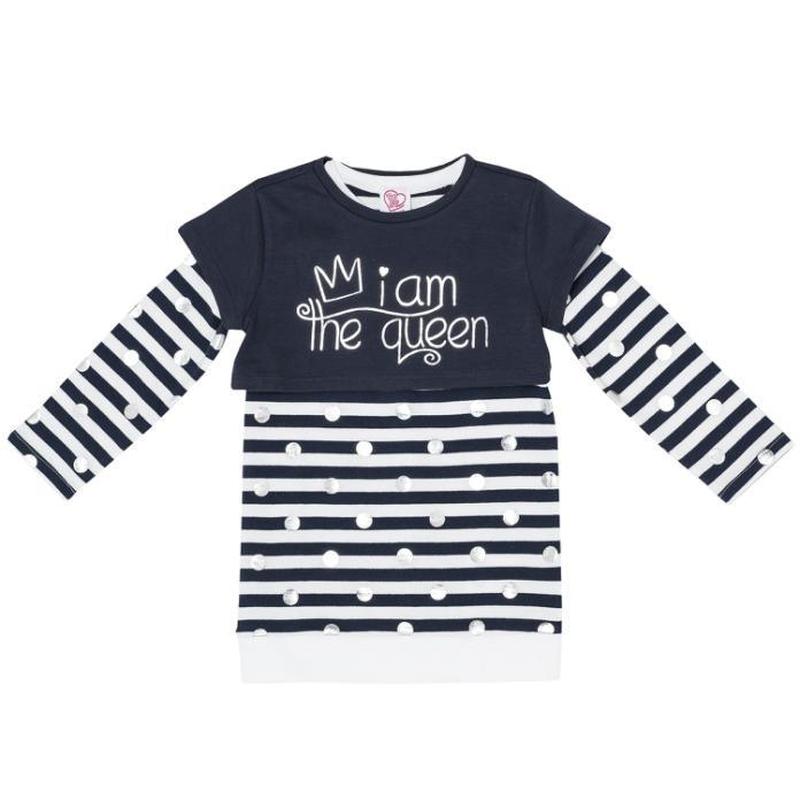 Платье в полоску для девочки Chicco платье с длинным рукавом, топ синий, съемный. Отделка в серебристый горох. 100% хлопок