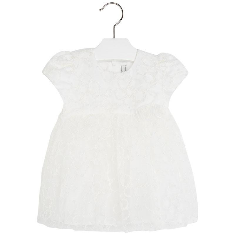 Белое платье для девочки Mayoral 56% акрил 40% полиамид 4% полиэстер легкое платье Mayoral нежно молочного цвета