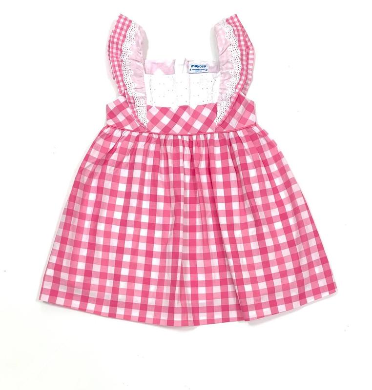Розовое платье для девочки Mayoral 100%хлопок //подложка:100%хлопок легкое платье Mayoral в розово/белую клеточку