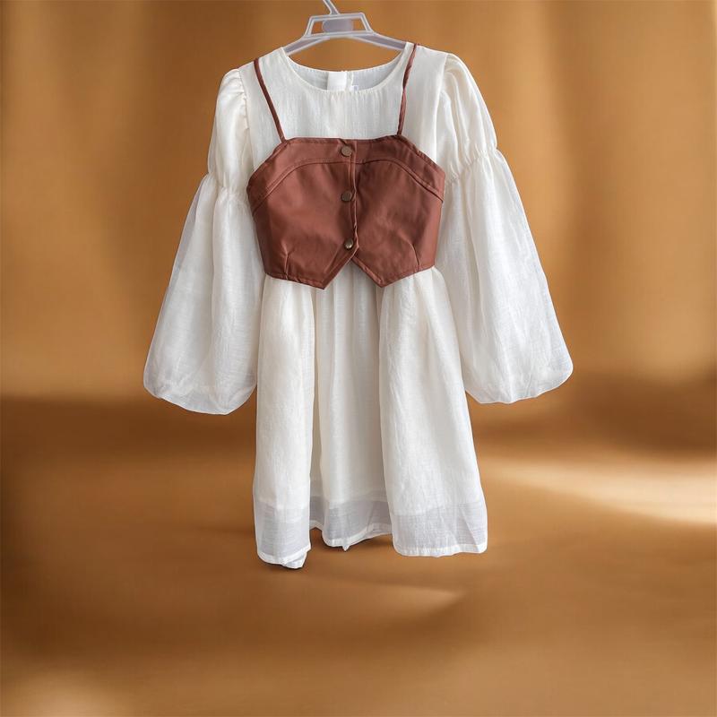 Сукня з корсетом для дівчинки Сукня з рукавами, на спинці замок Корсет знімається Можна носити як з корсетом так і без Сукня молочного кольору, корсет коричневий Розмір 130,140,150 Заміри 150 розмір Довжина сукні 75см. Довжина рукава від плеча 49см. Довжина рукава від горловини 55см. Заміри 140 розмір Довжина сукні 71см. Довжина рукава від плеча 47см. Довжина рукава від горловини 54см. Заміри 130 розмір Довжина сукні 69см Довжина рукава від плеча 44см Довжина рукава від горловини 50см