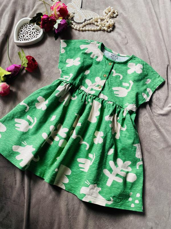 Стильне котонове платтячко Next. Стан ідеальний. Розмір 104 (3-4 роки), але найкраще орієнтуватись на заміри. Довжина по спинці 53 см. ПОГ 36 см. Дод. фото та заміри на вимогу.