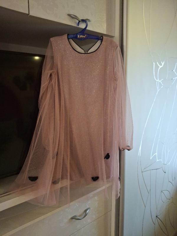 В нежно пудровом цвете с блестящей ткани, нарядное платье.
