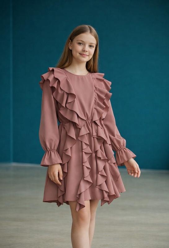через кнопку купить только полная оплата!!! Платье, которое делает образ нежным и особенным с первого взгляда ✨ Легкая, воздушная и невероятно приятная к телу - создана для комфорта и красоты каждый день 🤍 ✔ Талия на резиночке - удобно и красиво садится по фигуре ✔ Ткань super soft - мягкость, которую хочется чувствовать снова и снова ✔ Трендовые рюши - добавляют вау-эффект образа Идеальный вариант для праздников, прогулок и фотосессий 🌸 ЗАМІРИ ⤵️ +/- 1-2см!!! р.140- длина платья от плеча 70см/ рукав от плечевого шва 48см/ ПОГ 35см/ ширина талии 21см (тянется до 35см)/ длина юбки 39см. р.146- длина платья от плеча 73см/ рукав от плечевого шва 52см/ ПОГ 36см/ ширина талии 24см (тянется до 39см)/ длина юбки 40см р.152- длина платья от плеча 76см/ рукав от плечевого шва 53см/ ПОГ 37см/ ширина талии 25см (тянется до 40см)/ длина юбки 41см р.158- длина платья от плеча 77см/ рукав от плечевого шва 57см/ ПОГ 37см/ ширина талии 25см (тянется до 40см)/ длина юбки 42см Д-арт: 1736 Кр