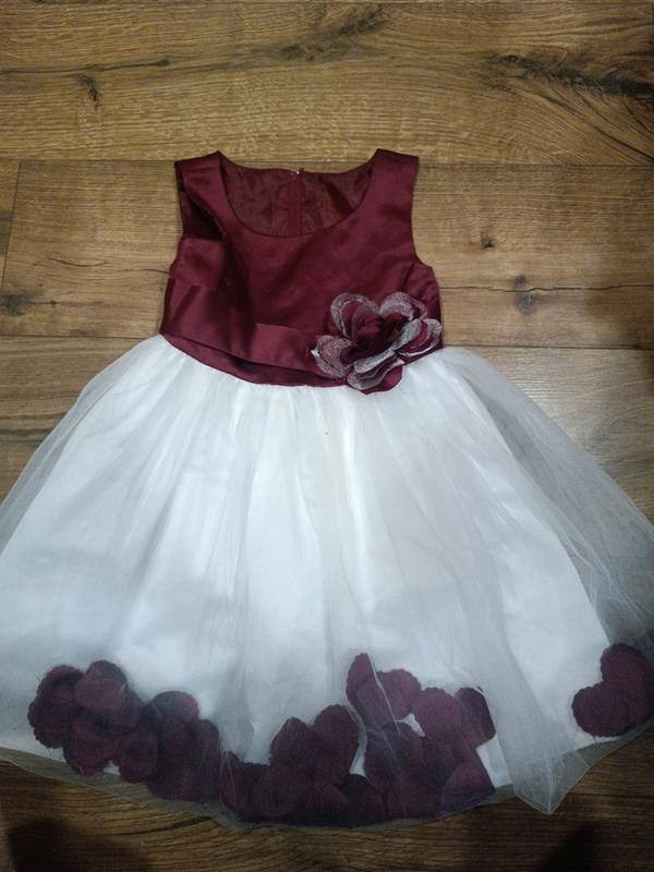 платье для девочки снизу де фатиновая белая юбка тоже цветочки верх платья бордового цвета низ белый платье в хорошем состоянии на 2-3 года