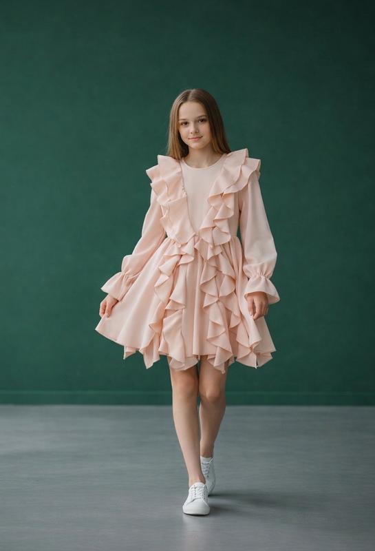 через кнопку купить только полная оплата!!! Платье, которое делает образ нежным и особенным с первого взгляда ✨ Легкая, воздушная и невероятно приятная к телу - создана для комфорта и красоты каждый день 🤍 ✔ Талия на резиночке - удобно и красиво садится по фигуре ✔ Ткань super soft - мягкость, которую хочется чувствовать снова и снова ✔ Трендовые рюши - добавляют вау-эффект образа Идеальный вариант для праздников, прогулок и фотосессий 🌸 ЗАМІРИ ⤵️ +/- 1-2см!!! р.140- длина платья от плеча 70см/ рукав от плечевого шва 48см/ ПОГ 35см/ ширина талии 21см (тянется до 35см)/ длина юбки 39см. р.146- длина платья от плеча 73см/ рукав от плечевого шва 52см/ ПОГ 36см/ ширина талии 24см (тянется до 39см)/ длина юбки 40см р.152- длина платья от плеча 76см/ рукав от плечевого шва 53см/ ПОГ 37см/ ширина талии 25см (тянется до 40см)/ длина юбки 41см р.158- длина платья от плеча 77см/ рукав от плечевого шва 57см/ ПОГ 37см/ ширина талии 25см (тянется до 40см)/ длина юбки 42 см Д-арт: 1737