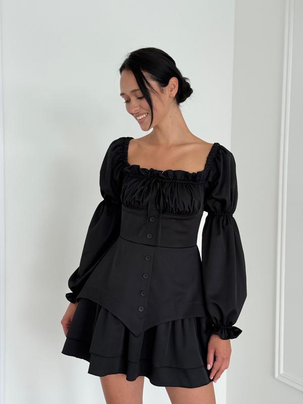 Любите клиенты! ‼️Наложка является только новой по почте по предоплате 200 грн. Укр почта по полной оплате. Безопасной оплаты нет! Перед заказом, уточните наличие! Благодарю Платье, подчеркивающее фигурку и легко меняющее настроение ✨ Плечи можно носить открытыми или поднять – тогда образ становится более сдержанным и закрытым. Корсетная линия талии и V-образная баска визуально вытягивают силуэт и делают фигуру еще более утонченной. Юбка с воланами добавляет легкости и красивого движения. Детали: ▫️ трансформированные плечи (открытые или закрытые) ▫️ акцентная талия ▫️ V-образная баска (корсетный низ) ▫️ юбка с воланами ▫️ потайная молния на спинке ▫️ качественная костюмная ткань – комфортная и хорошо держит форму р.XS (152-158)-1шт р.S (158-164)-1шт ЗАМІРИ ⤵️ +/- 1-2см!!! р.XS- длина платья от плеча 77см/ рукав от плеча 63см/ ПОГ 33см/ ширина талии 31см/ длина юбки 41см р.S- длина платья от плеча 79см/ рукав от плеча 64см/ ПОГ 35см/ ширина талии 33см/ длина юбки 42см