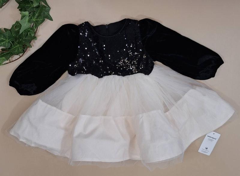 Красива пишна сукня для дівчинки Верх велюр, прикрашений паєтками Три шари фатину, шифонова підкладка Виміри: 90 – довжина 50 см, рукав 30 см, пог 30 см 100 – довжина 54 см, рукав 34 см, пог 31 см 110 – довжина 56 см, рукав 38 см, пог 32 см 120 – довжина 60 см, рукав 40 см, пог 33 см 130 - довжина 64 см, рукав 44 см, пог 36 см 140 - довжина 69 см, рукав 49 см, пог 38 см