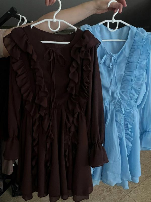Воздушное, невероятно нежное и легкое платье очень интересного дизайна. Она сделает образ романтичным, нежным и загадочным. Тканина шифон. КАЧЕСТВО ЧУДОВА! ЦВЕТ - "ШОКОЛАД". Замеры: рукав от плеча/длина/пог 140 - 49/66/33 146 - 51/70/34 152 - 53/76/35 158 - 55/82/36 164 - 57/84/37