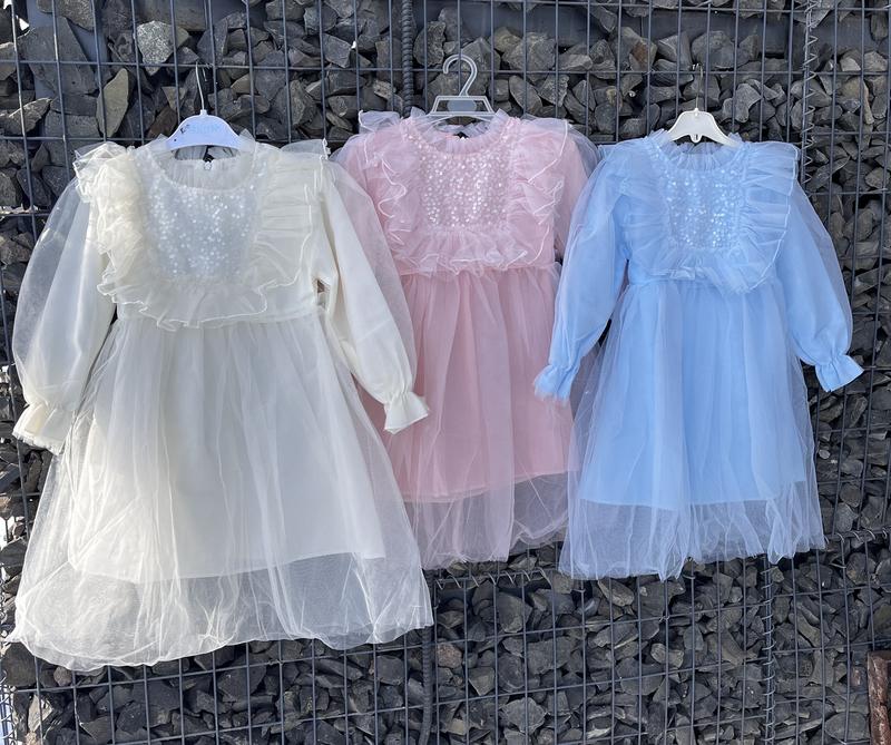 Святкова сукня з рукавом для дівчинки Кольори: рожевий, молочний, блакитний Молочне 150розмір Довжина плаття 70см Довжина рукава від плеча 39см Довжина рукава від горловини 46см Пів обхват грудей 31 см Рожеве 130розмір Довжина плаття 64см Довжина рукава від плеча 36см Довжина рукава від горловини 41см Пів обхват грудей 29см Блакитне 140розмір Довжина плаття 67см Довжина рукава від плеча 37см Довжина рукава від горловини 43см Пів обхват грудей 30см