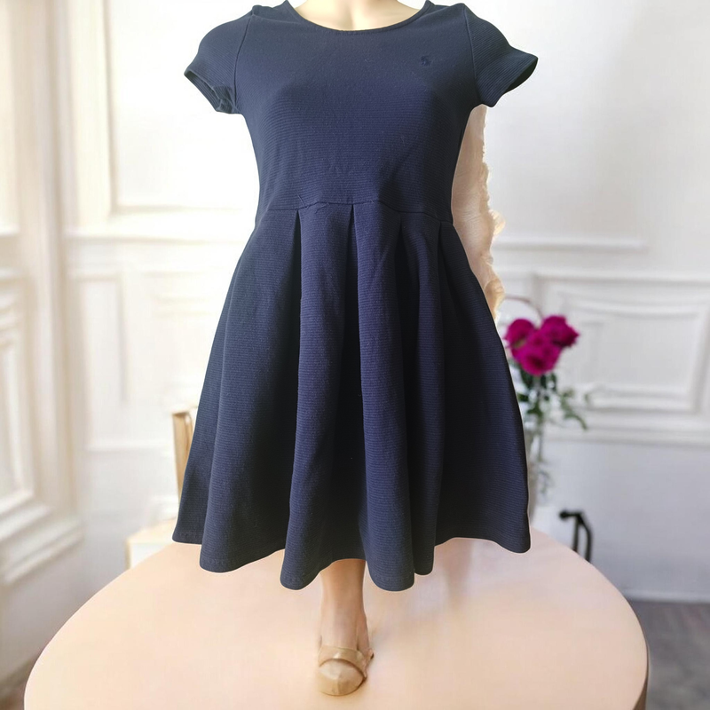 Дитяча темно-синя сукня довжиною до коліна, виконана в стилі skater dress (приталений ліф і розкльошена спідниця). На 8-10років, з щільної тканини,коттон Довжина 71см НОГ 32см