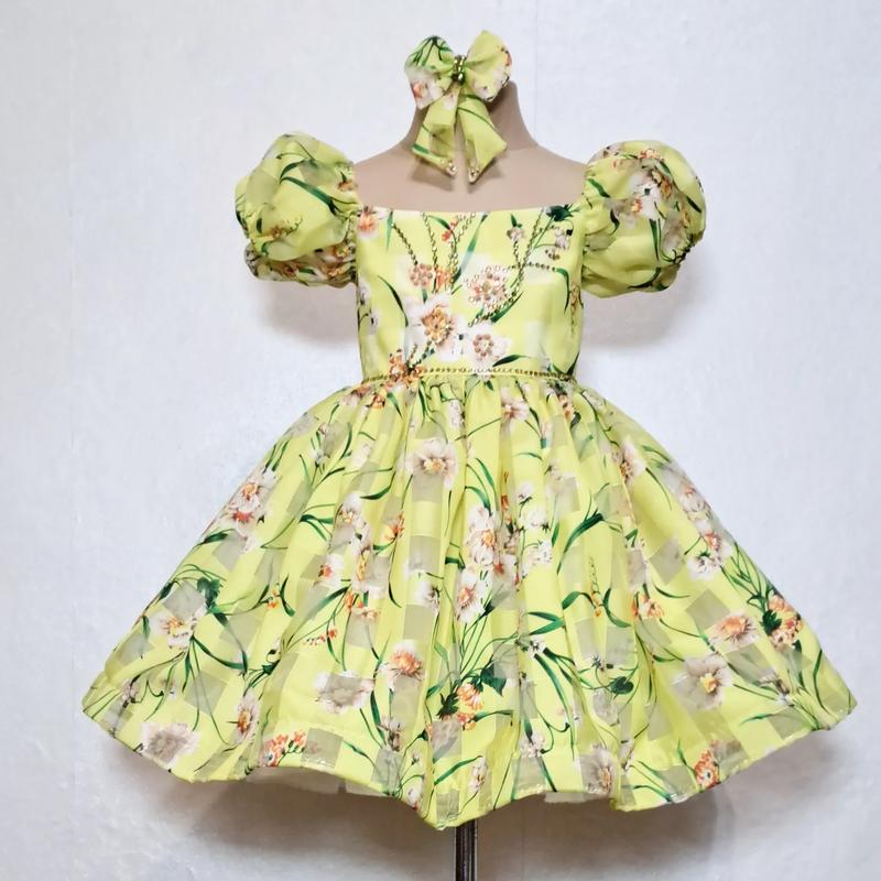 пышное платье в цветы нарциссы. По спинке шнуровка для удобства. Обхват груди-66 см Длина платья-70 см Есть другие платья с розами,пионами, яблоневым вязком. Другой размер пошива за 2 суток.
