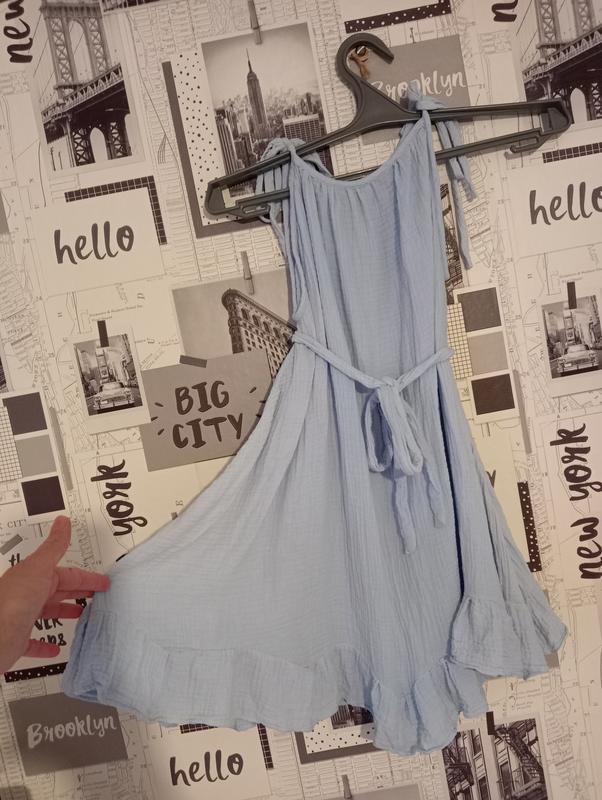 🌿 Нежное муслиновое платье для девочки 🌿 Легкая, воздушная и очень комфортная - идеальный вариант на весну и лето ☀️ ✨ Ткань: 100% хлопок (муслин) — мягкая, дышащая, приятная к телу ✨ Цвет: нежный голубой ✨ Декор: завязки и пояс в комплекте ✨ Длина: 68–83 см (регулируется завязками) ✨ Грудь: 43 см ✨ Стан: нова, хендмейд Подойдет на рост 116-152 (платье универсального размера) Платье красиво садится по фигуре, не сковывает движений и отлично подходит как для праздничных событий, так и для ежедневных прогулок 💙 📦 Быстрая отправка 📩 Пишите — с удовольствием ответьте на все вопросы!