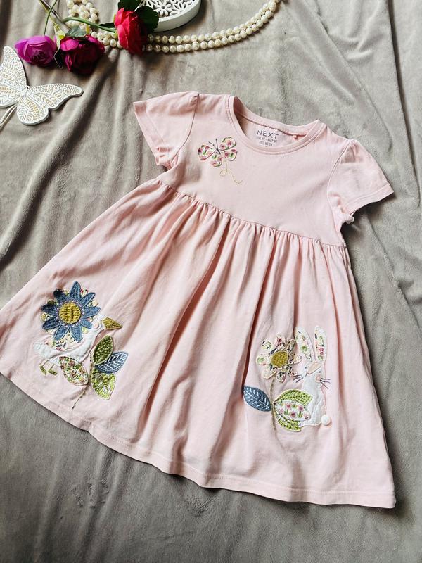 Гарненьке котонове платтячко Next. Стан ідеальний. Розмір 104 (3-4 роки), але найкраще орієнтуватись на заміри. Довжина по спинці 51 см. ПОГ 31 см. Дод. фото та заміри на вимогу.