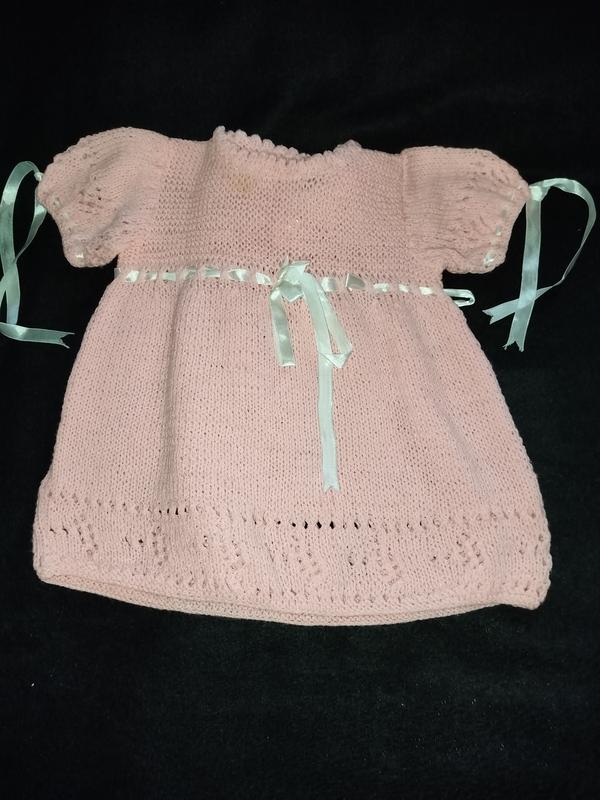Вязаное платье с лентами и пуговицами замеры: длина по спинке-40см ширина -31см
