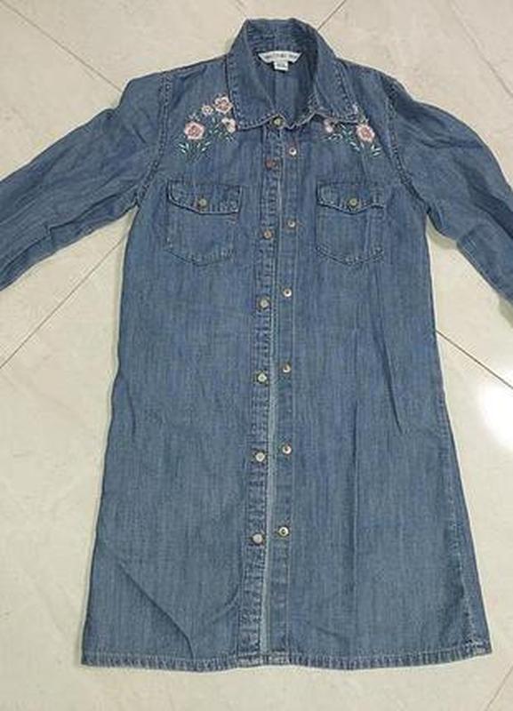 Платье джинсовое с вышивкой гладью на плечах, на заклепках, для девочек на 13-14 лет 164 см