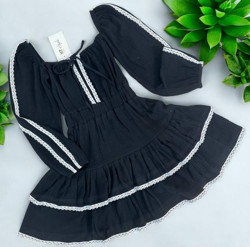 Нежное платье для девочки Ткань муслин Прикрашена мереживом Легкая и приятная к телу в поясе под резинку КАЧЕСТВО ЧУДОВА! длина от плеча/пог/рукав 134/69/30/49 кид.р.