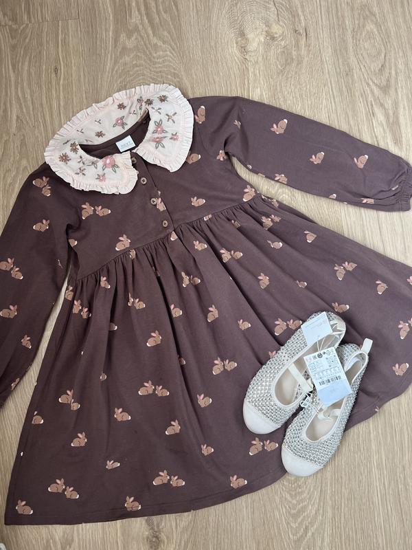 Фірмова сукня некст в ідеальному стані,Тільки одна незначна плямка, в носці не видно,116 розмір, рукав від плеча 40 см, довжина 59, пог 30; туфлі 31 розмір нові, Устілка від краю до краю 20 , 5 см, по бірці 19,6 см, 1300 за все, окремо туфлі 750 грн, сукня 680.