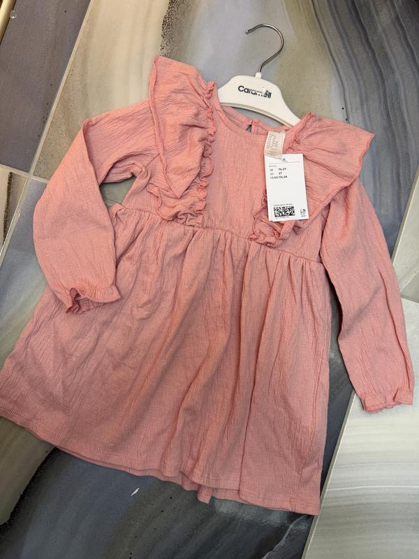 • Колір: ніжно-рожевий • Матеріал: 95% бавовна, 4% поліестер, 1% еластан • Стиль: з довгими рукавами та оборками • Стан: абсолютно новий з бірками • Не носилось