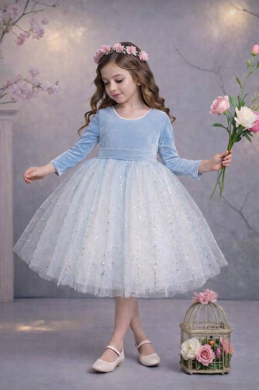 🌹 красивое праздничное платье 🌹 велюр три слоя фатина + две подкладки завязывается пояс застежка молния цвет голубой Код: 21 ЗАМІРИ от плеча до пояса / длина полная /ширина по груди /рукав от плеча ✅80р 17/48/25/25 ✅90р 18/52/27/27 ✅110р 20/60/29/30 ✅120р 22/65/30/32 🧸Цена 850грн