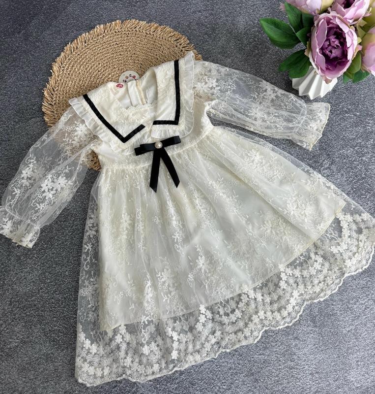 Нарядное кружевное платье Снизу на хлопковой подкладке Рукав без подкладки,прозрачный 😻 Сзади на скрытой застежке молнии. 110 - длина 58 см, ширина 25 см, рукав 37 см 120 - длина 62 см, ширина 26 см, рукав 40 см 130 - длина 65 см, ширина 28 см, рукав 42 см 140 - длина 72 см, ширина 30 см, рукав 44 см 150 - длина 74 см, ширина 32 см, рукав 47 см Замер рукава от горловины н. ст.