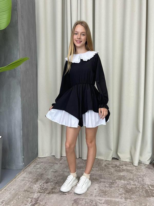 В наявності💜 Стильна та модна шкільна сукня для дівчаток Тканина софт Гарна якість! довжина\пог\рукав р 128-67/40/50 р 140-71/42/53 р 152-77/43/54 р 164-78/46/56 +-1 см Розміри 140 - 1 шт