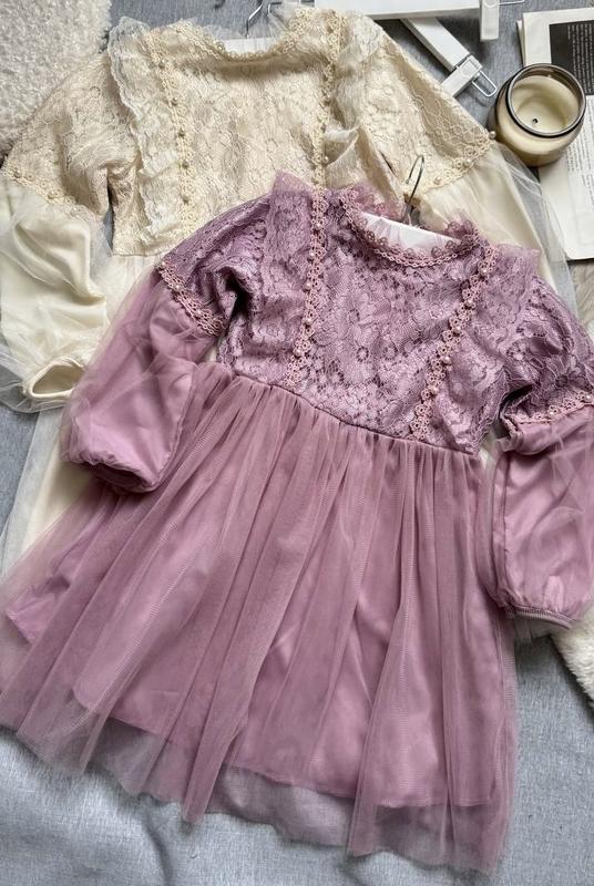 Спідничка з фатину — легка, повітряна та гарно тримає форму. Рукавчики з фатину надають образу ніжності На спинці сукня застібається на зручну блискавку — легко одягати та знімати. Заміри: р.110 - довжина 61 см, ширина 33 см, плечі 25 см, рукав від плеча 39 см р.120 - довжина 64 см, ширина 34 см, плечі 26 см, рукав від плеча 41 см р.130 - довжина 67 см, ширина 34 см, плечі 26 см, рукав від плеча 44 см р.140 - довжина 70 см, ширина 35 см, плечі 28 см, рукав від плеча 47 см р.150 - довжина 75 см, ширина 38 см, плечі 30 см, рукав від плеча 49 см р.160 - довжина 78 см, ширина 41 см, плечі 32 см, рукав від плеча 51 см