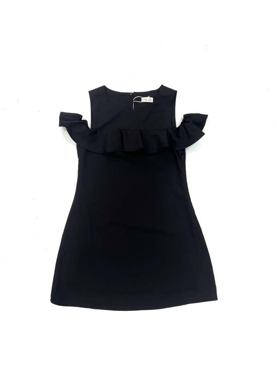 Шикарна сукня чорного кольору для дівчинки, без рукавів, на широких бретелях. Волани на рівні грудей. Підійде як на урочистість, так і до школи. Має підкладку Колір: чорний Склад: 94% поліестер, 6% еластан Заміри: Півобхват по грудях - 40см Півобхват талії - 38 см Пів обхват бедер - 46 см Довжина - 74 см Радила б брати на менший вік або на невисоку дівчинку