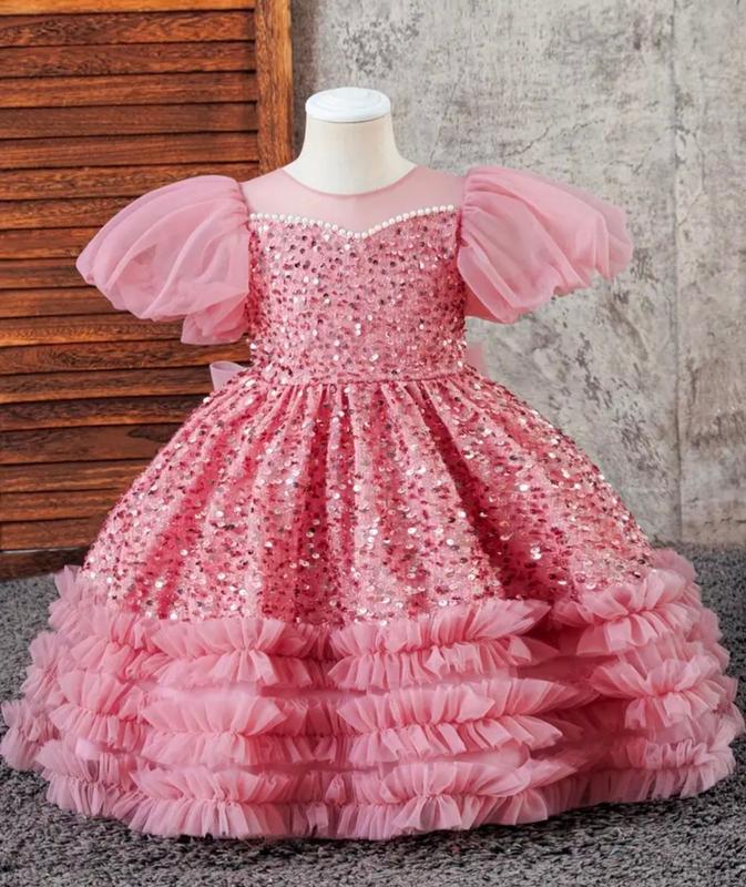 🌹 дитяча святкова сукня 🌹 трикотажна сітка розшита паєтками бавовняна підкладка знизу сукні три ряди рюш об"ємні рукава - ліхтарики прикрашено перлинками ззаду бант кріпиться на кнопки застібається на блискавку не пишна!! ЗАМІРИ довжина повна / від плеча до пояса /ширина по грудях ✅4р 62/24/28 ✅7р 77/29/32 похибка +-1см НАЯВНІСТЬ 4р 2шт 7р 1шт