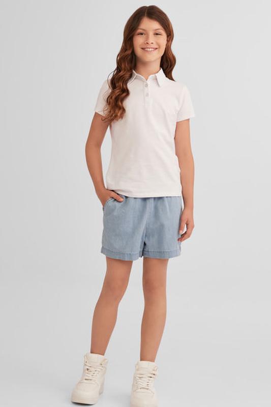 Белая футболка поло для девочки от F&F 11-12 лет длина 61 см Плечи 35 см ПОГ 44 см ПОТ 42 см ПОниз 44 см 100% хлопок ткань средней плотности,структурированный воротничок текстура рельефная ІДЕАЛЬНОГО СТАНУ,практично НОВОГО,абсолютно