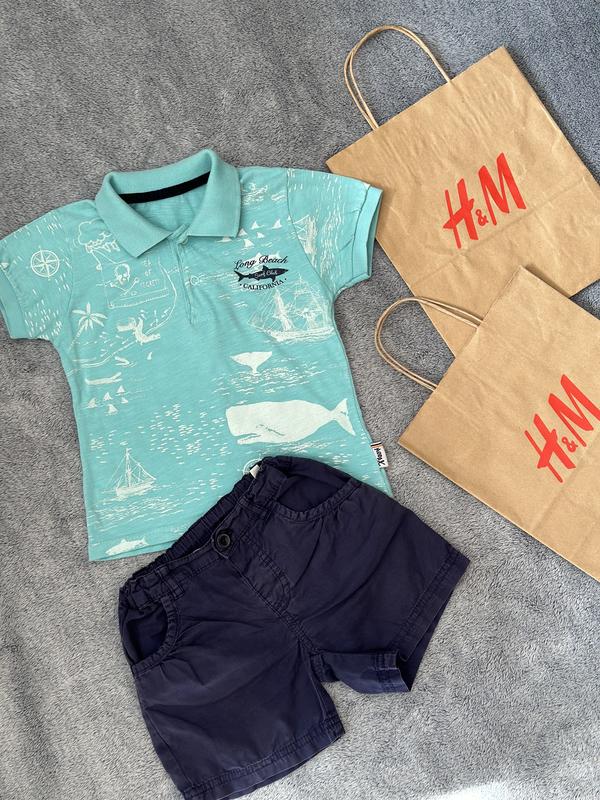 Очень красивая и симпатичная футболка, нежный и приятный цвет🥰 Стан идеален, пятен нет катышек. Темно синие шорты в подарок 🎁