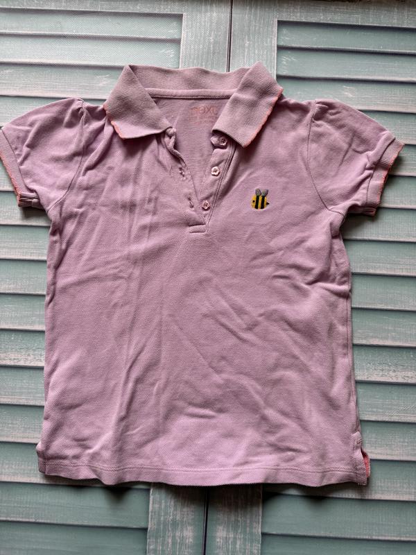 Футболка-поло Next в отличном состоянии! Сбоку есть милая вышивка зайчика или пчелки) В белом и сиреневом цвете Размер 6–7 г Цена 200 грн за две шт