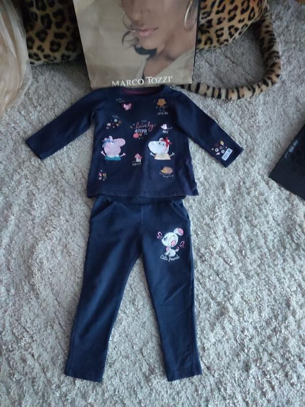 Очень миленький комплектик со свинкой Пеппой. Смотрится очень эффектно и забавно. Ребёнку в нём очень комфортно и уютно, хороший бренд, хорошее качество, хлопок. Кофточка-туничка, штаны джогеры, модные, стильные. В очень хорошем состоянии, без дефектов. Рекомендую на 2-4 года, смотря какой ребёнок, ориентируйтесь на мои замеры : кофта ПОГ-28-30, ПОТ-30-32, длина - 37, рукав -29. Штаны - пояс -24-28, бёдра - 30-34, длина - 50/35, посадка - 18/22.Оплата на карточку приватбанка, отправка любым почтовым перевозчиком. Никаких других способов пересылки и оплаты нет. Перед покупкой уточняйте наличие и условия пересылки.