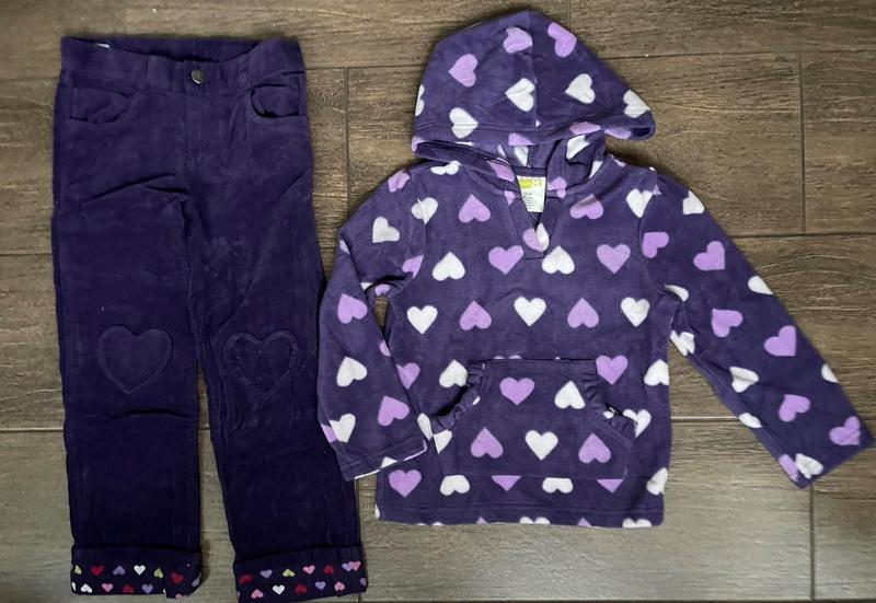 Великолепный теплый, стильный и приятный на ощупь костюм на девочку от известного американского бренда Crazy8 (США). Худи в сердечко микрофлисовое с карманами, брюки вельветовые на хб подкладке, на коленках сердечки, на поясе есть утяжка. На бирке указан возраст 4-5Т. Обязательно ориентируйтесь только на замеры! Верх: длина 41 см, ширина 31 см, длина рукава 38 см Низ: длина брюк 62 см, по внутр. шву. 45 см, пот 28 см