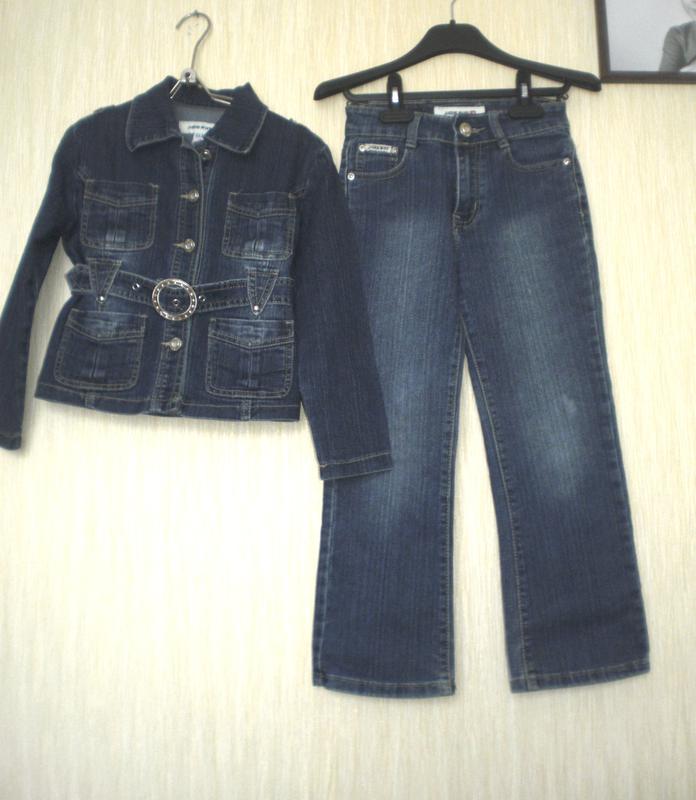 Продам красивый джинсовый костюм JADK WAY на девочку 5-6 ле в отличном состоянии,без дефектов.На этикетке размер 21 но сверяйте замеры со своими : жакет длина 42, плечи 34,рукав 43.под мышками 37.Пошив приталенный.Брючки длина 74, талия п/о 30,бедра п/о 38. Ткань со стрейчем, мягкая , хорошо тянется. Пересылаю.