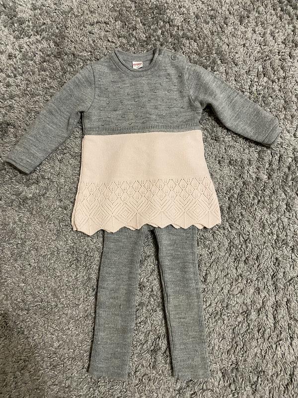 Теплый шерстяной костюм на девочку Турция Лосины и туника Размер указан 18 месяце, но по факту до 2,5 лет Ориентируйтесь на замеры После одного ребенка В хорошем состоянии