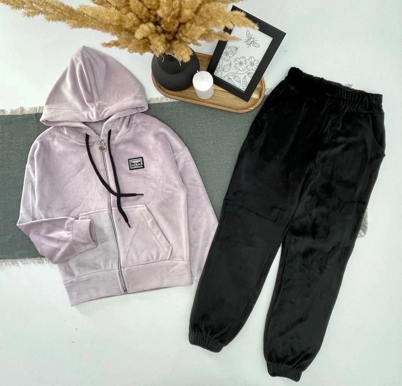 арт 950 🍄Крутой теплый костюм на молнии велюр на меху 🍄с капюшоном и карманами СУПЕР КАЧЕСТВО! размер/🍄долж./пог/рукав от горловины/🍄долж.штанов/шак/пот/поб 146/🍄49/40/56/🍄82/61/28/42-2шт 152/🍄53/42/58/🍄88/65/29/45-1шт