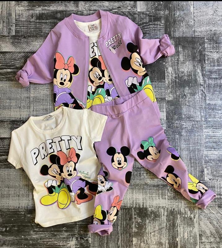 Новинка Весна 2023✅✅✅ Комплект 3-ка - лосіни ,футболка ,кофта на блискавці Виробник Туреччина 🇹🇷 Даже стильно виглядає🥰🥰🥰 Люкс якість❤Рекомендую ! Якісний малюнок ,при пранні не злазить! Бавовна 💯 3/4 року - лосини довжина 58 см, крок 40 см, ширина 25 см футболка довжина 38 см, пог 28 см кофта довжина 42 см, пог 30 см, рукав 38 см (2 шт) 4/5 років - лосини довжина 64 см, крок 44 см, ширина 27 см футболка довжина 41 см, пог 30 см кофта довжина 43 см, пог 31 см, рукав 40 см (3 шт) 5/6 років - лосини довжина 67 см, крок 48 см, ширина 28 см футболка довжина 41 см, пог 32 см кофта довжина 44 см, пог 32 см, рукав 41 см (3 шт) 7/8 років - лосини довжина 71 см, крок 52 см, ширина 30 см футболка довжина 45 см, пог 34 см кофта довжина 46 см, пог 35 см, рукав 44 см (3 шт) 9/10 років - лосини довжина 74 см, крок 55 см, ширина 32 см футболка довжина 48 см, пог 36 см кофта довжина 49 см, пог 36 см, рукав 47 см (1 шт)