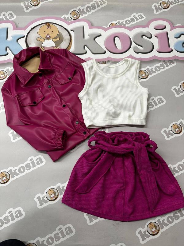 цена 650грн курточка эко кожа юбка вельвет футболка рубчик 64р (110-116см) 68р (116-122см) 72р ( 122-128см) 76р ( 128-134см)