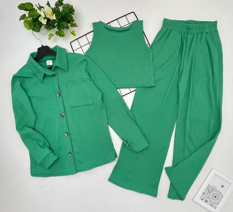 арт 2057 Костюм Супер новиночка! Рубашка, топ та штани-палаццо тканина рубчик-мустанг с карманами рубашка и брюки по бокам с разрезами выглядит невероятно современно! размер/длин.руб./пог/рукав от горловины/длин.топа/пог/длин.штанов/крок/пот/пот похибка+-2см 158/61/48/62/34/34/91/63/29/47-1шт 164/62/50/63/35/35/94/66/31/50-1шт