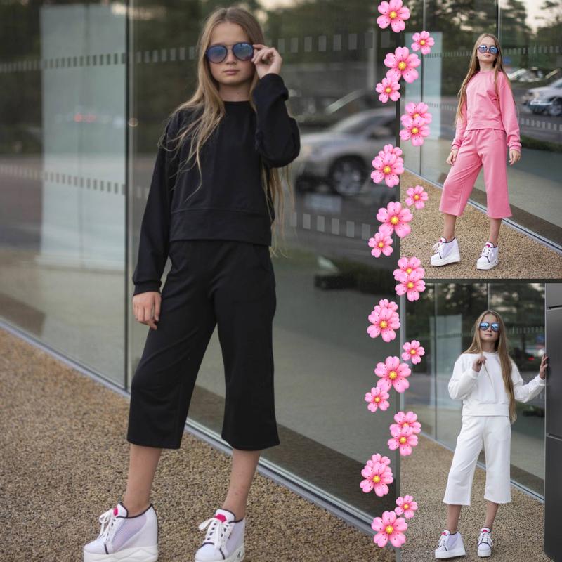 Ціна -495 грн Розміри - 134-140,140-146,146-152,152-158 Костюм двійка Тканина двонитка високої якості Колір - молочний, чорний, розовий №2080